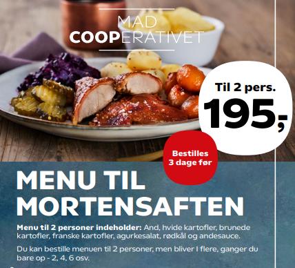 Menu til 2 personer indeholder: And, hvide kartofler, brunede